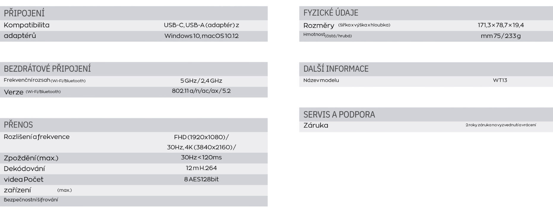 Bezpečnost: Stabilní přenos zajišťuje šifrované připojení (Bluetooth/WiFi).