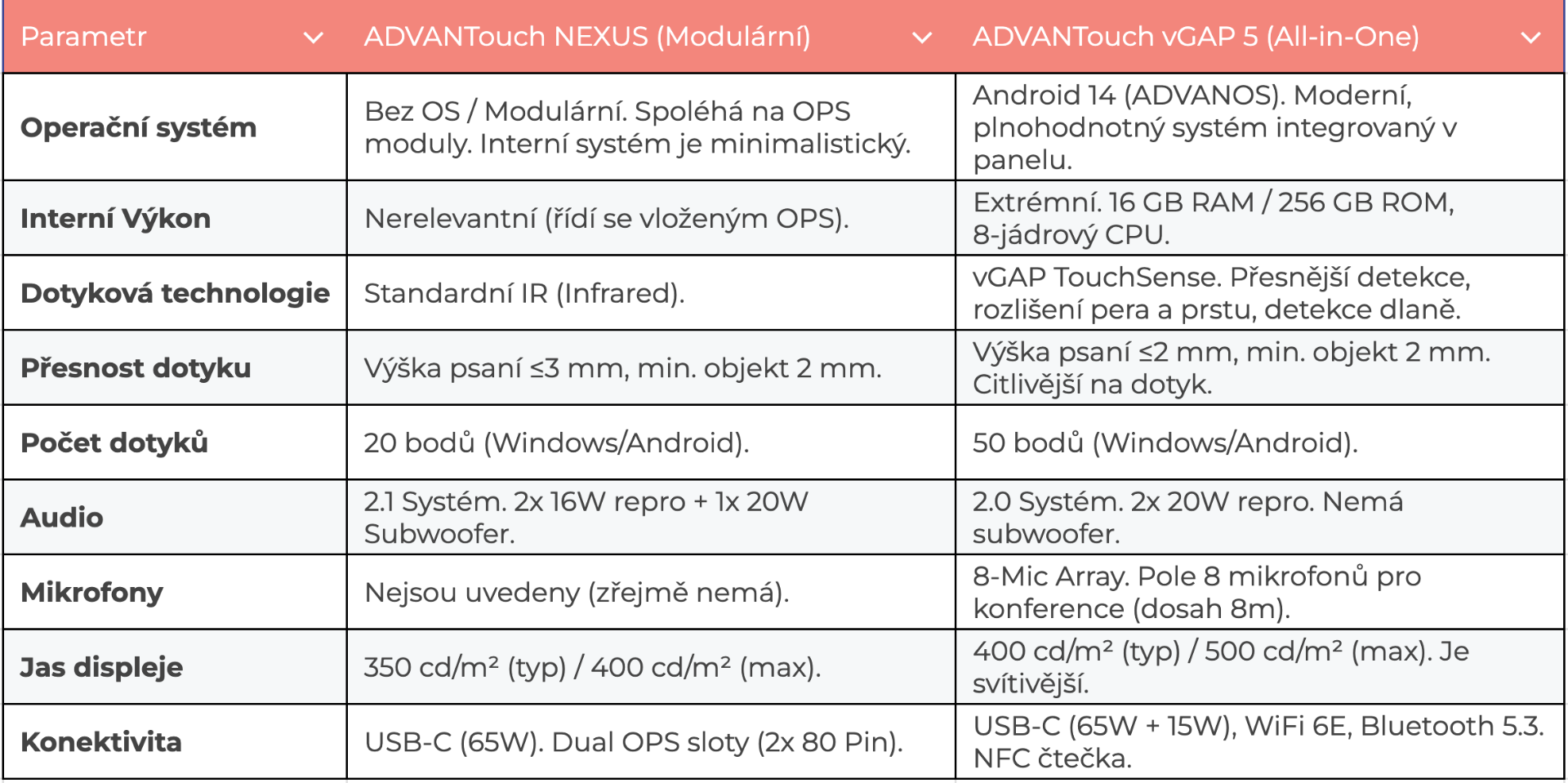 Srovnání displejů ADVANTouch vGAP5 vs NEXUS