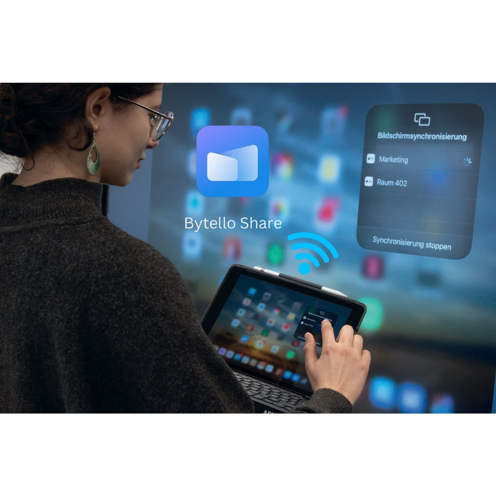 Rozšířené funkce – podpora více dotykových bodů, bezdrátové sdílení obrazu, práce s perem, nahrávání a poznámky přímo na obrazovku.