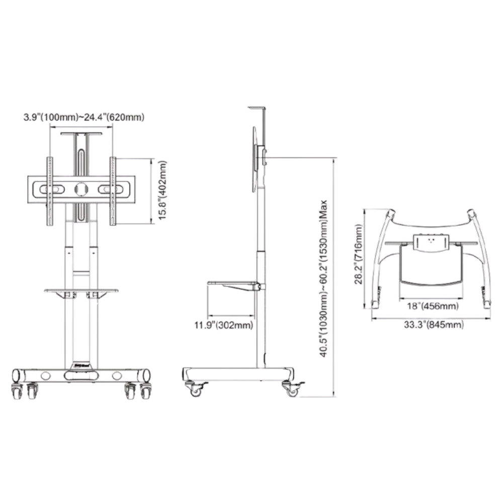 Televizní stojan určený na komerční účely v nejvyšší kvalitě a skvělém designu. Stojan je určen pro zavěšení televizorů s úhlopříčkami 32 až 65". Na typu nezáleží, je určen jak pro LED, LCD, plazmové, tak i dotykové nebo 3D televize. Dodáván je včetně širokého příslušenství, které vám umožní jeho maximální využití při vynaložení minimálních prostředků - police na příslušenství, polička na kameru, web kameru nebo projektor, police na podstavci. Televizní stojany AVA1500 jsou nejčastěji využívány na výstavách, prezentacích, reklamních akcích, v čekárnách, lékárnách, ordinacích, na přednáškách a konferencích. Jeho konstrukce je provedena tak, aby stojan poskytoval velmi snadnou a rychlou mobilitu, která se vám velmi osvědčí právě při různých akcích. Jelikož jsou tyto stojany velmi často využívány na veřejných místech, poskytuje i možnost uzamčení televizoru kvůli možnému odcizení obrazové techniky.