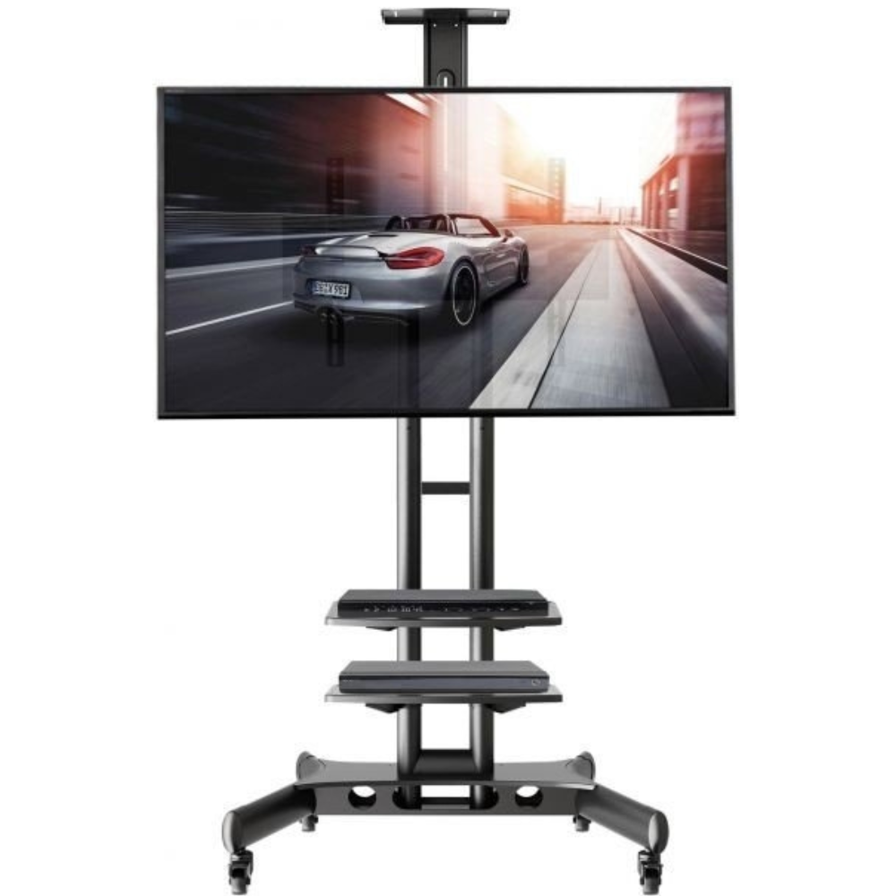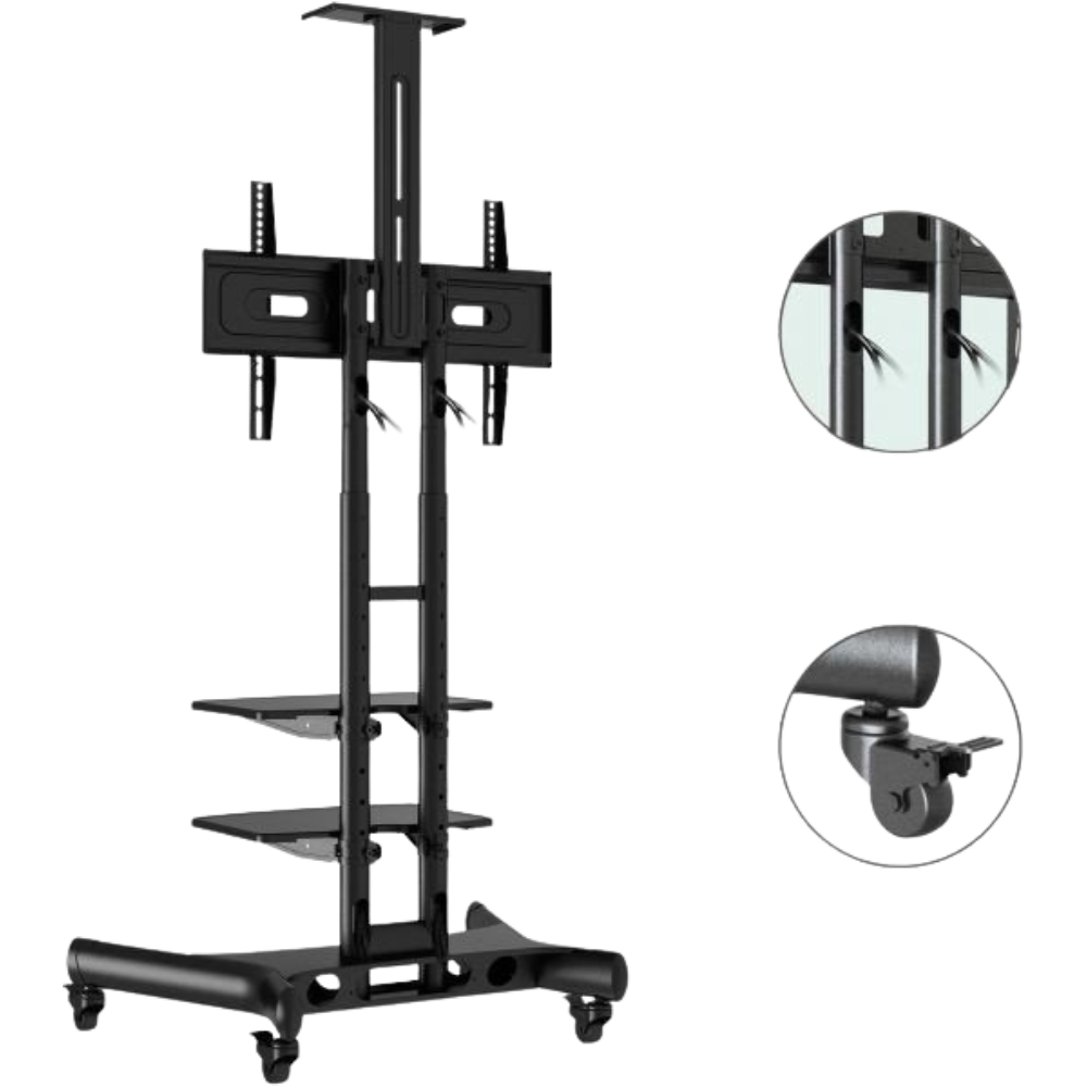 Stojan STRICT BRAND SB151 je perfektní volbou pro všechny LED, LCD, OLED, zakřivené nebo plazmové televizory o rozměrech 32 až 65". Dodáván je včetně širokého příslušenství, které vám umožní jeho maximální využití při vynaložení minimálních prostředků - police na příslušenství, polička na kameru, web kameru nebo projektor, police na podstavci. Montáž stojanu zabere max. 5 minut. Televizní stojany SBCA55 jsou nejčastěji využívány na výstavách, prezentacích, reklamních akcích, v čekárnách, lékárnách, ordinacích, na přednáškách a konferencích. Jeho konstrukce je provedena tak, aby stojan poskytoval velmi snadnou a rychlou mobilitu, která se vám velmi osvědčí právě při různých akcích. Jelikož jsou tyto stojany velmi často využívány na veřejných místech, poskytuje i možnost uzamčení televizoru kvůli možnému odcizení obrazové techniky. Profesionální konstrukce, špičkové provedení, snadná nastavitelnost a bohaté příslušenství, to vše za velmi příznivou cenu. Díky těmto vlastnostem se stal televizní stojan STRICT BRAND SB151 je velmi žádaným a vyhledávaným.